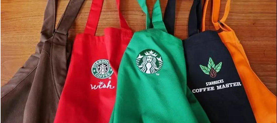 常去星巴克的人们可能看到,星巴克员工的围裙常见有4种颜色:绿色、黑色、咖啡色、紫色,如下图所示意,显然这些颜色都有各自的意义,并不是所有员工都能穿黑围裙或者特殊的红围裙。这其实是星巴克内部的一种等级制度,代表了初级、进阶、高级、特殊高级,是需要通过进修和比赛等过程才能晋级的。