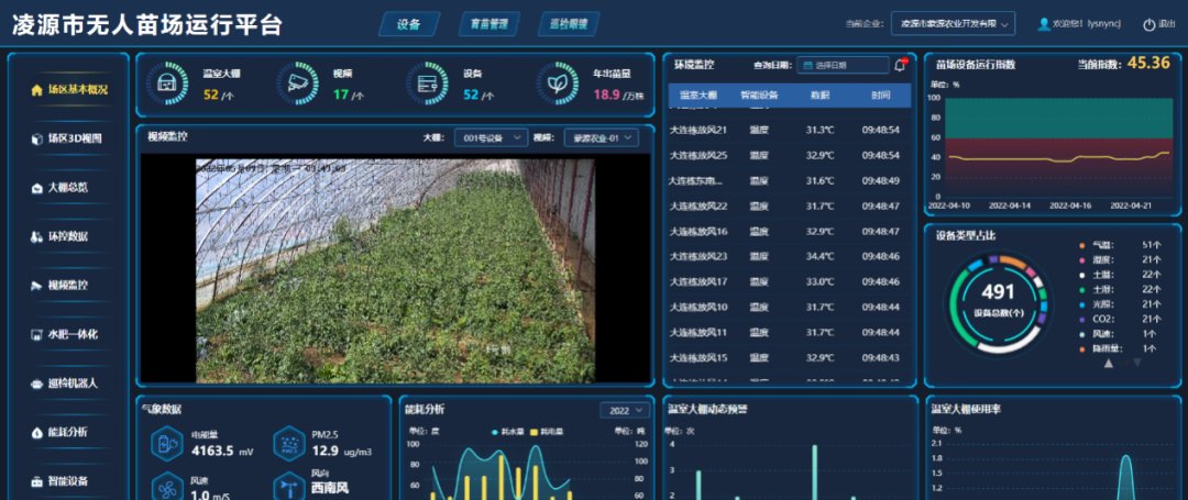 应用AI视频监控技术。通过摄像头,获取大棚内设备和环境的运行情况,管理人员根据系统所观察到图像判断和管理育苗生长情况。