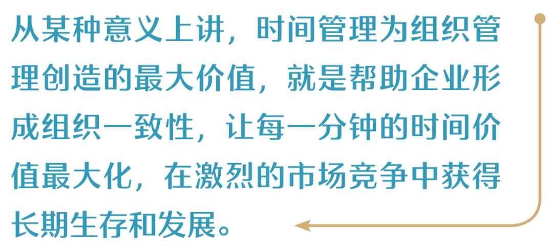 从某种意义上讲,时间管理为组织管理创造的最大价值,就是帮助企业形成组织一致性,让每一分钟的时间价值最大化,在激烈的市场竞争中获得长期生存和发展。