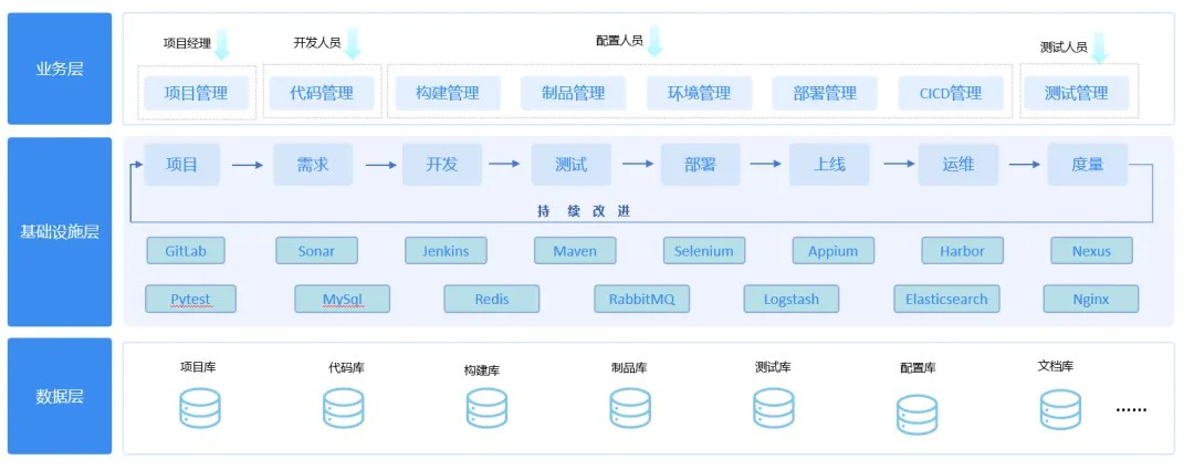 ● 测试管理:提供一站式测试管理服务,主要包括测试过程与自动化测试管理两大块内容。覆盖测试用例及缺陷管理、测试质量分析、开源软件及自主研发测试工具的统一调度,帮助用户高效管理测试活动,保障产品高质量交付