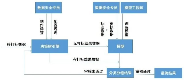 该系统具有“系统自动化分类分级流程”、“决策树引擎”和“机器学习模型”三大特点,在实现分类分级自动化,提升效率的同时,进一步与行内流程紧密结合,实现降本增效。